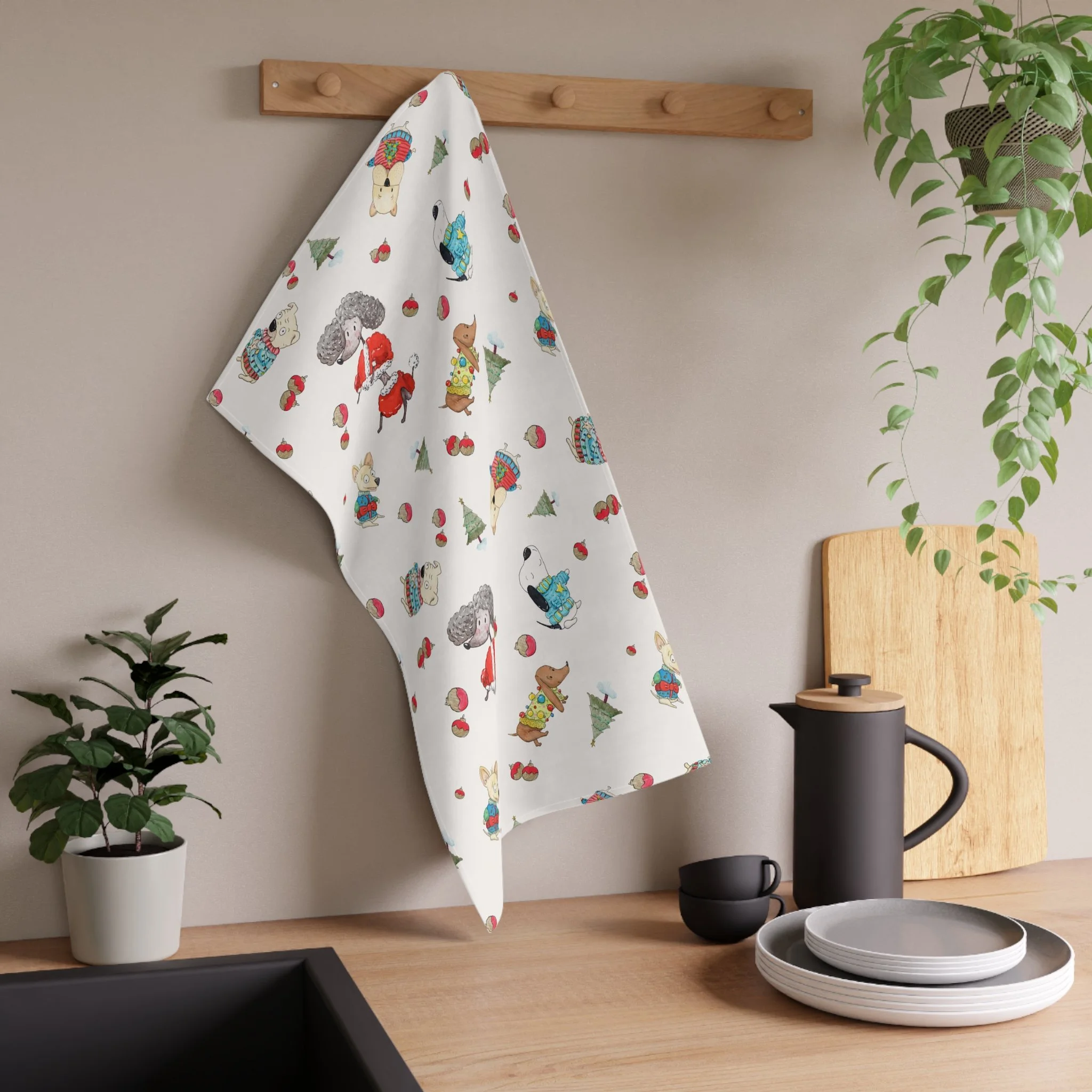 Ugly Sweater Party Tea Towels: Dogs proudly showing off their hilariously ugly Christmas sweaters — Here to add a touch of character & utility to any kitchen. Not only does it have a stunning one-sided print, but it's also a trusty and expressive helper to the cook. Choose between polyester or cotton material to best match your decorative or cooking needs.